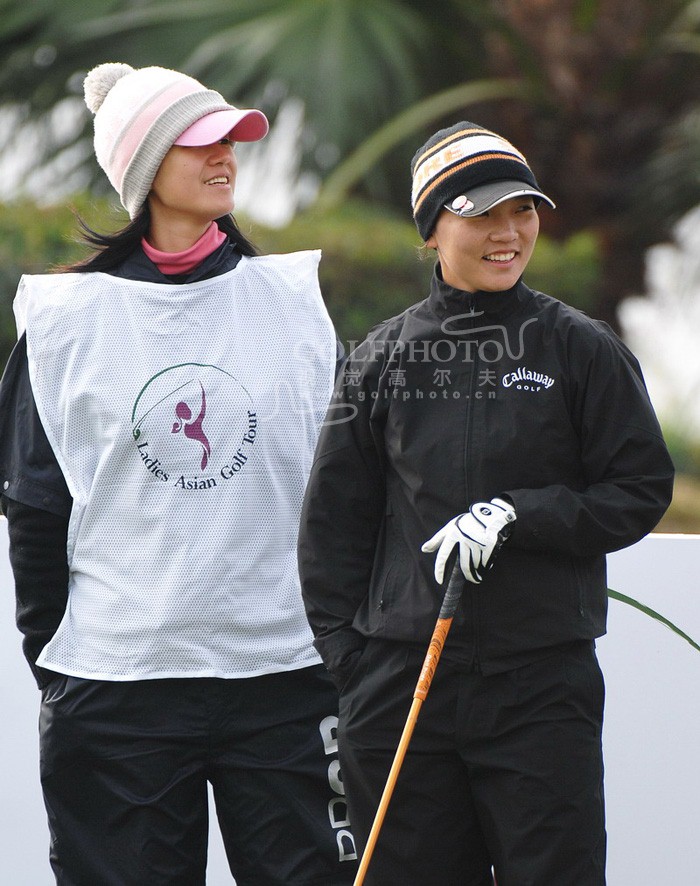 1987年出生的中国台北选手卢晓晴,师从Henri Reis和Glen Daugherty 。2005年11月正式转为职业球员,2006年成为未来之星巡回赛、台湾女子高尔夫协会和亚洲女子巡回赛的会员。目前卢晓晴征战于LPGA赛场,是名副其实的美少女选手。图为卢晓晴(右)与球童在一起。