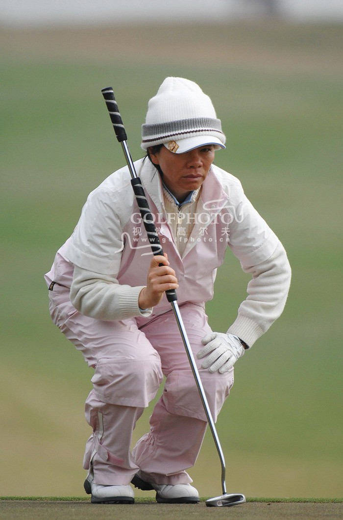 TSENG HSIU-FENG)打出77杆的成绩,排名并列第26位。TSENG HSIU-FENG在比赛中使用的是长把推杆,图为