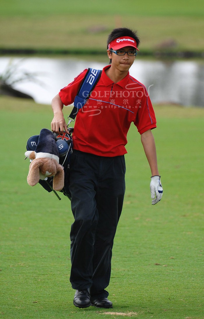 【golftime讯】2007年中国青少年高尔夫球公开赛于2月5日至9日在海南博鳌亚洲论坛高尔夫球会举办。2月9日进行A组(15-17岁)和B组(11-14岁)男女个人比杆赛的决赛轮比赛。A、B组男女选手共有144名选手参赛。A组男子方面,两位来自中国台北的选手——郭家彬与蔡丛宇的总成绩都是221杆,经过加洞赛的较量,最终蔡丛宇战胜郭家彬获得第一,郭家彬屈居第2,严载雄以222杆(77-75-70)的总成绩获得第3名,而前两天一直领先的深圳小将叶剑威今天只打出75杆,以223杆(72-76-75)的总成绩获得A组男子第4名。周国武以235杆的总成绩排名第9。图为周国武在比赛中。