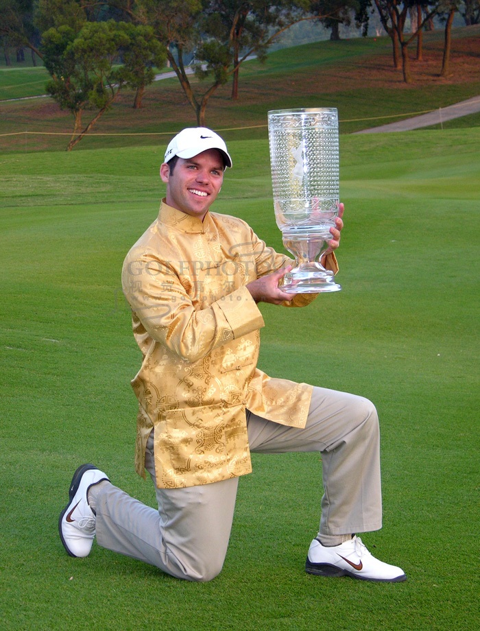 【golftime讯】2005年的VOLVO中国公开赛11月27日在深圳高尔夫俱乐部进行了最后一轮的角逐。共有来自27个国家和地区的144名球员将在深圳角逐130万美元总奖金,其中中国和中国台北总共有31名选手参赛。决赛轮卡西的总成绩是275杆,低于标准杆13杆。与威尔逊并列排在首位。经过延长赛卡西终战胜威尔逊夺得2005年VOLVO中国公开赛的冠军,威尔逊获得第2。巴瑞·莱恩以276杆总成绩排名第3。中国名将张连伟以279杆的总成绩,排名并列第7。图为卡西夺冠。