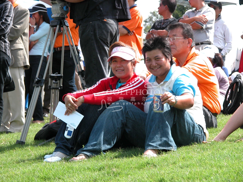 【golftime讯】2006年亚洲女子巡回赛第三站——马来西亚公开赛3月4日进行决赛轮的比赛,本站赛事总奖金为10万美金。第二轮比赛结束后,有61名选手成功晋级,其中中国内地选手有7名选手晋级决赛,她们是钟笑龙、张娜、陈小红、尚林艳、张林、王纯和魏俊萍。决赛轮结束后,韩国选手JI, EUN HEE以214杆的总成绩,获得冠军。泰国选手GULYANAMITTA, RUSSAMEE、韩国选手LEE, JEONG EUN 3与威尔士选手PILGRIM, ELEANOR排在并列第二。中国内地选手钟笑龙以223杆的总成绩,排名并列第16。图为选手打完比赛再享受颁奖。