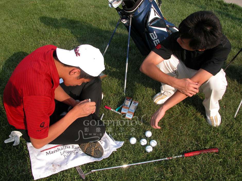 叶剑威赛前练习日为自己的球做标记