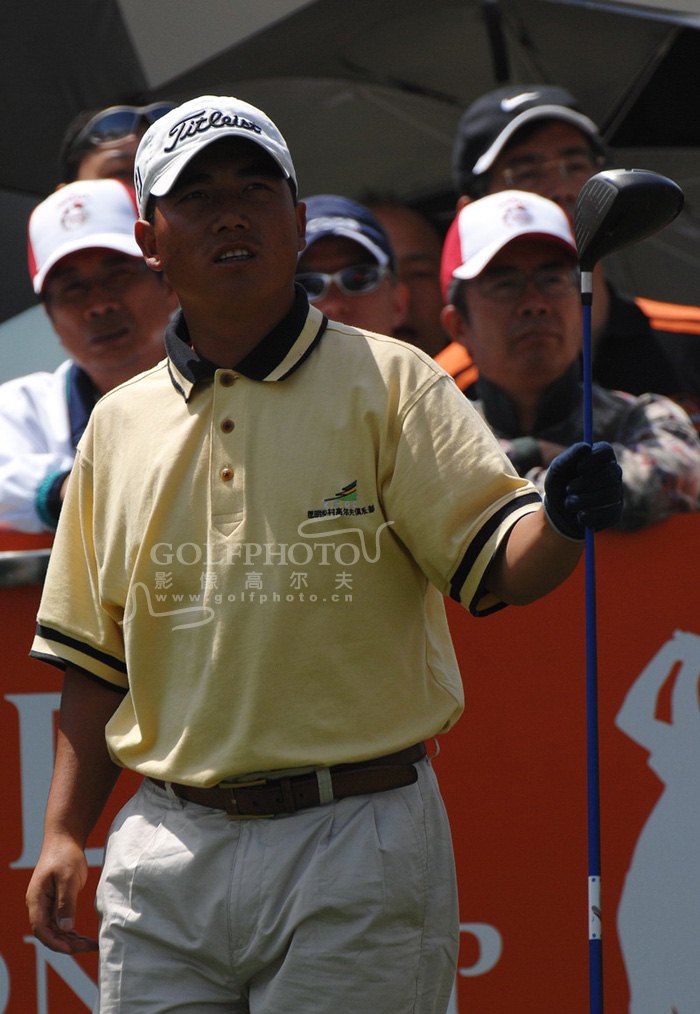 【golftime讯】2007年欧米茄中国巡回赛首站-索菲特高尔夫锦标赛5月13日在南京钟山国际高尔夫俱乐部进入决赛轮的争夺。第三轮发挥出色打出68杆的何绍才,今天却没有那么好的状态,遭遇8个博基和一个双博基,捉了3只小鸟,只打出79杆的成绩,四轮后他的成绩是298杆+10。 图为何绍才在比赛中。(报道:golftime·君玲/摄影:golfphoto·老高)